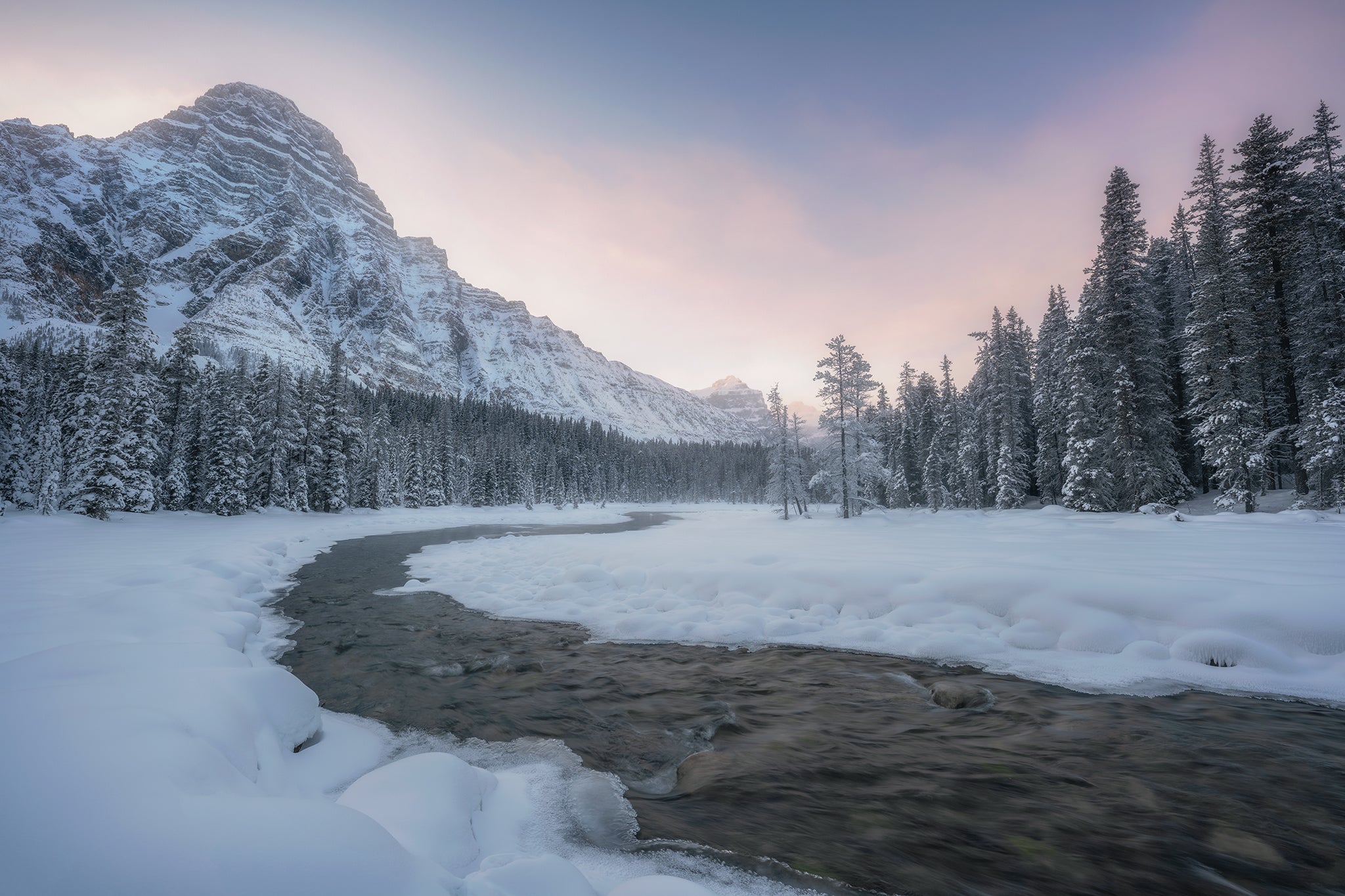 I spend significant time studying weather patterns, seasonal light, and the character of specific locations across Alberta. Many of these photographs are captured in unpredictable conditions, before sunrise, in winter cold, or during fast-moving mountain storms.