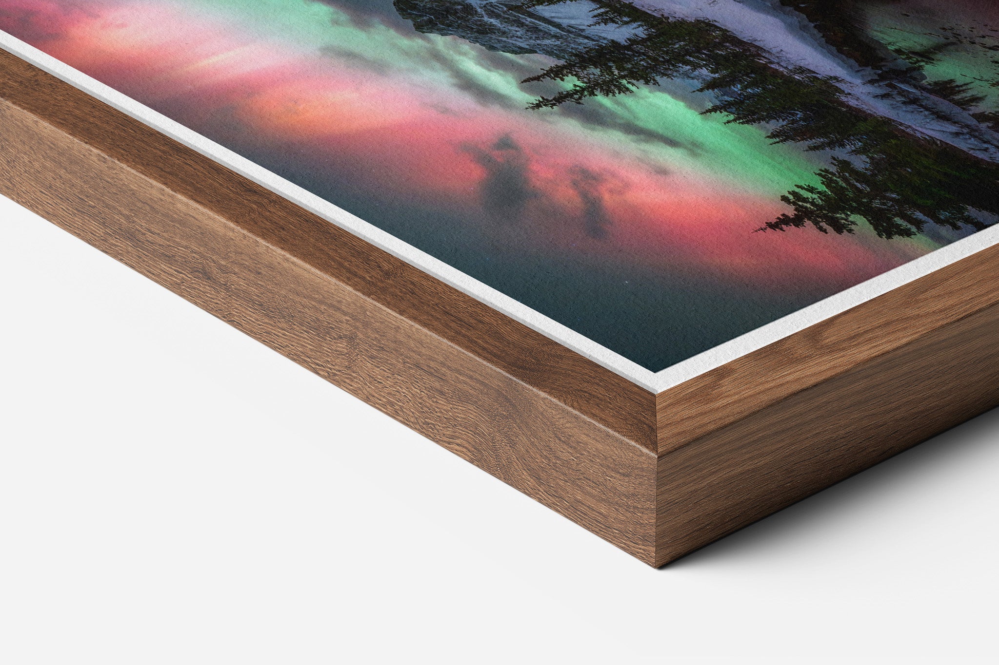 Master Collection paper prints are available framed in a solid walnut molding with UV-protective glass and an acid-free white mat. The mat creates a clean border around the print, complementing the signed white border where your edition number sits. Arrives ready to hang with hardware attached.